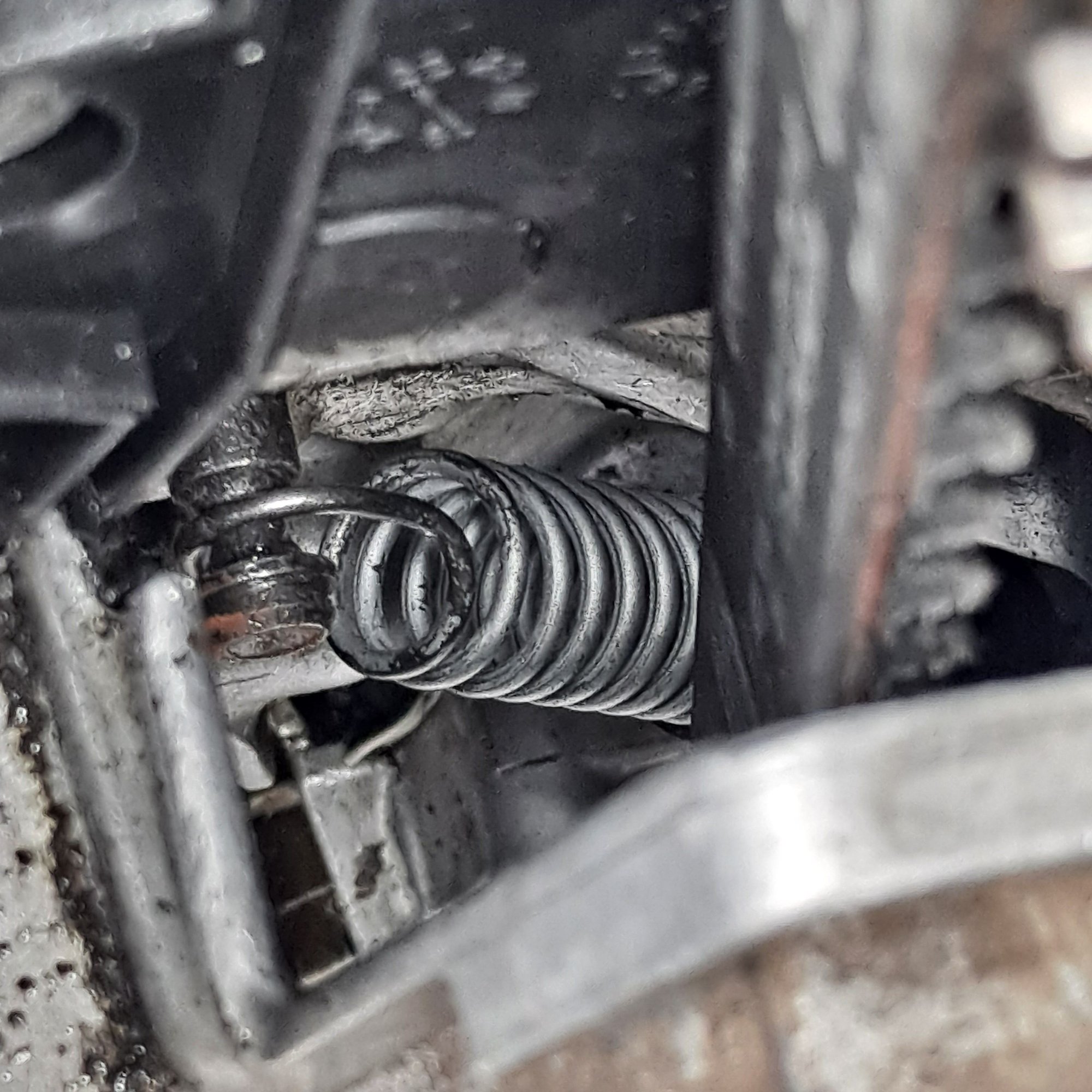 not my call Aunt is paying and she wanted cheap. So in farting around with this heap I managed to move timing 2 teeth. Not wanting to disassemble I left the mount and ps bracket on. Resetting the timing once again! I had a helluva time getting the tension spring to that post because I couldn't pull it towards the block. I had my neighbor help guide it on with needle nose and a flathead. I am wondering if the spring is damaged? I havent torqued down the tensioner bolt just yet.