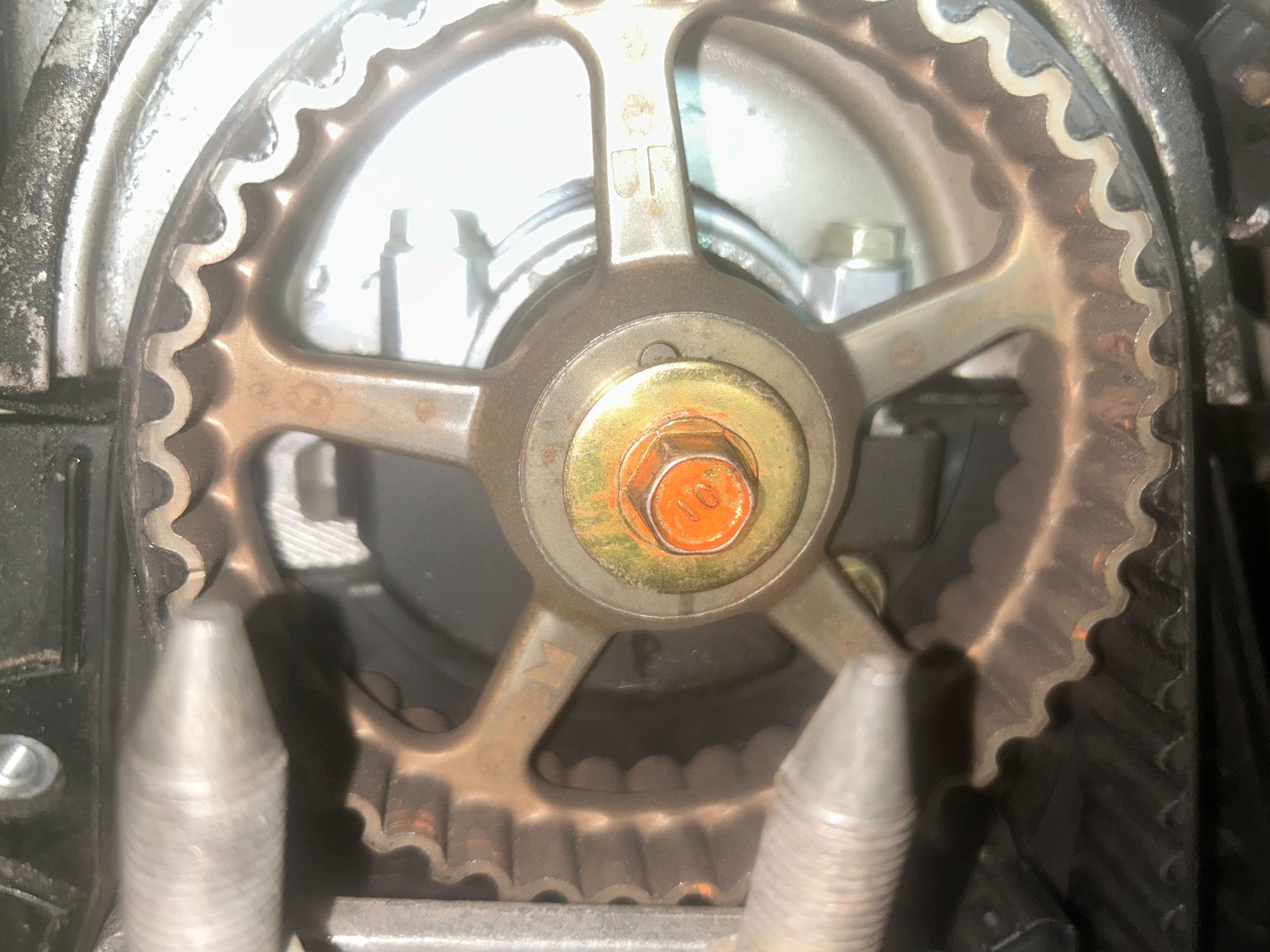 I thought if both sensors are functioning maybe there is a problem with the timing so we pulled the upper timing cover. I believe the belt has jumped a tooth but wanted to confirm before the timing belt is replaced. See the pictures below.