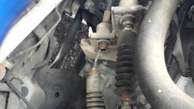 Anyways, I took a look under the hood to see if it was any bushings, and I found this delightful mess: