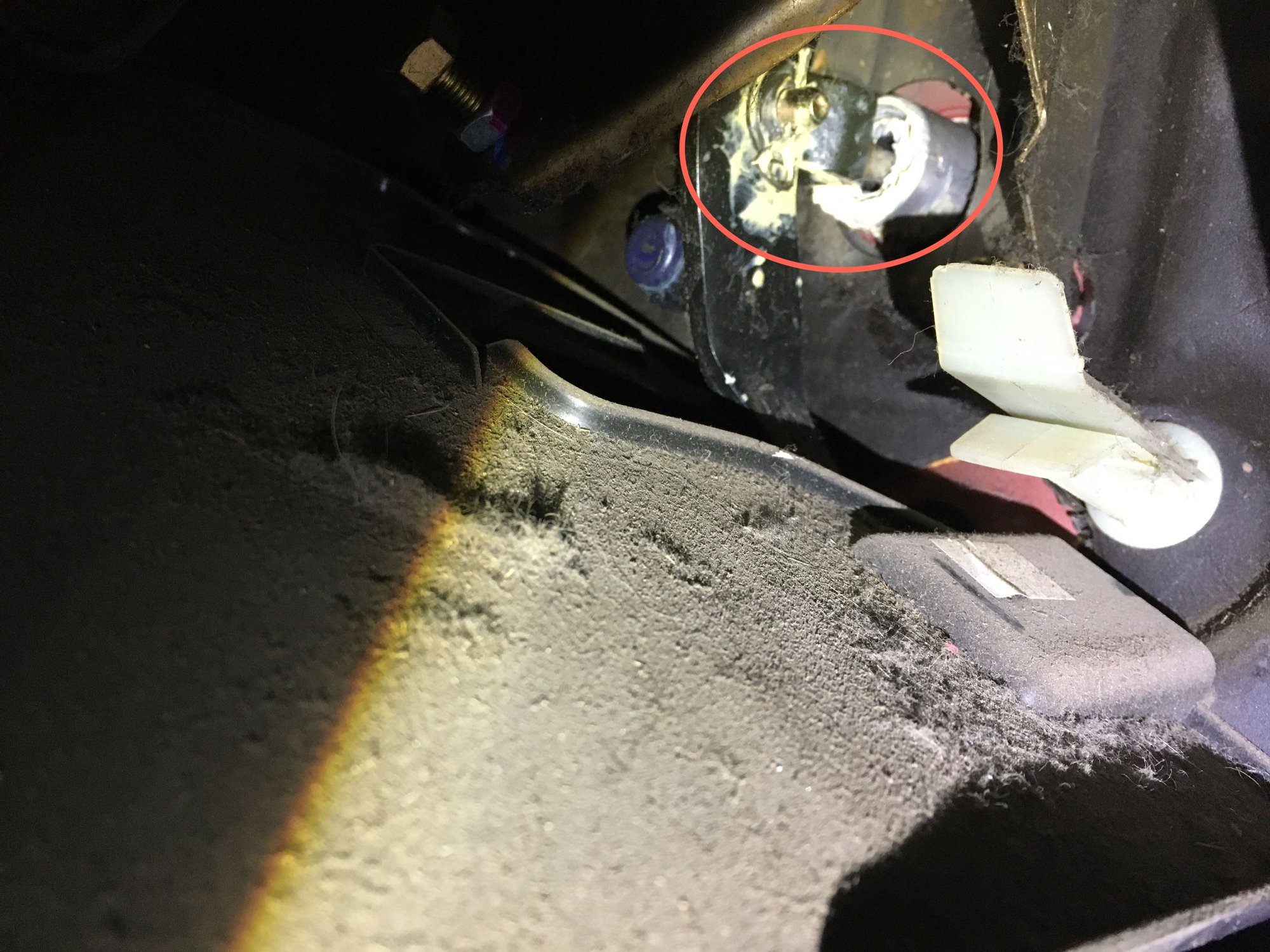 Trying to diagnose why my slave cylinder isnt building up pressure. Poked my head down to look at the clutch master cylinder and theres this crusty white paste on it from inside.