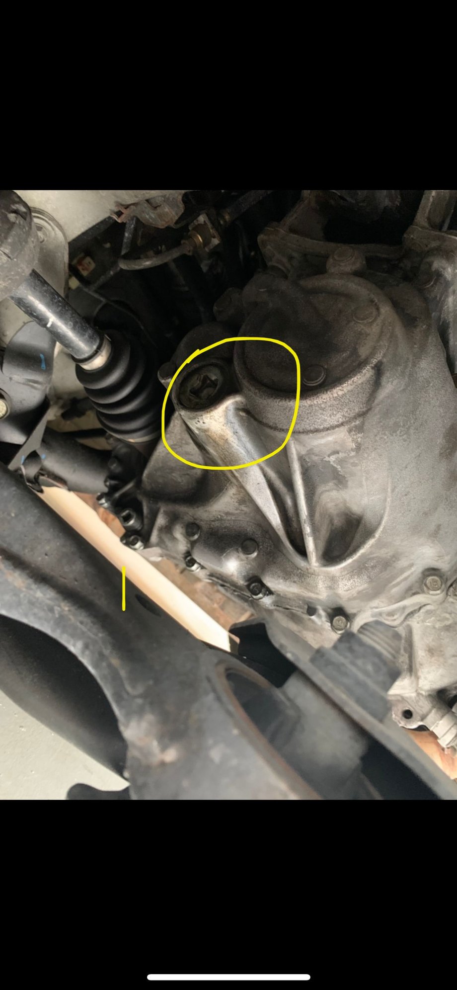 So I have a very mild trans leak and it seems to be coming out of this plug I know it sounds stupid to ask, but I don’t want to mess anything up The yellow circled plug is what I am asking for Where the yellow line is , that is the drain plug ( for reference)