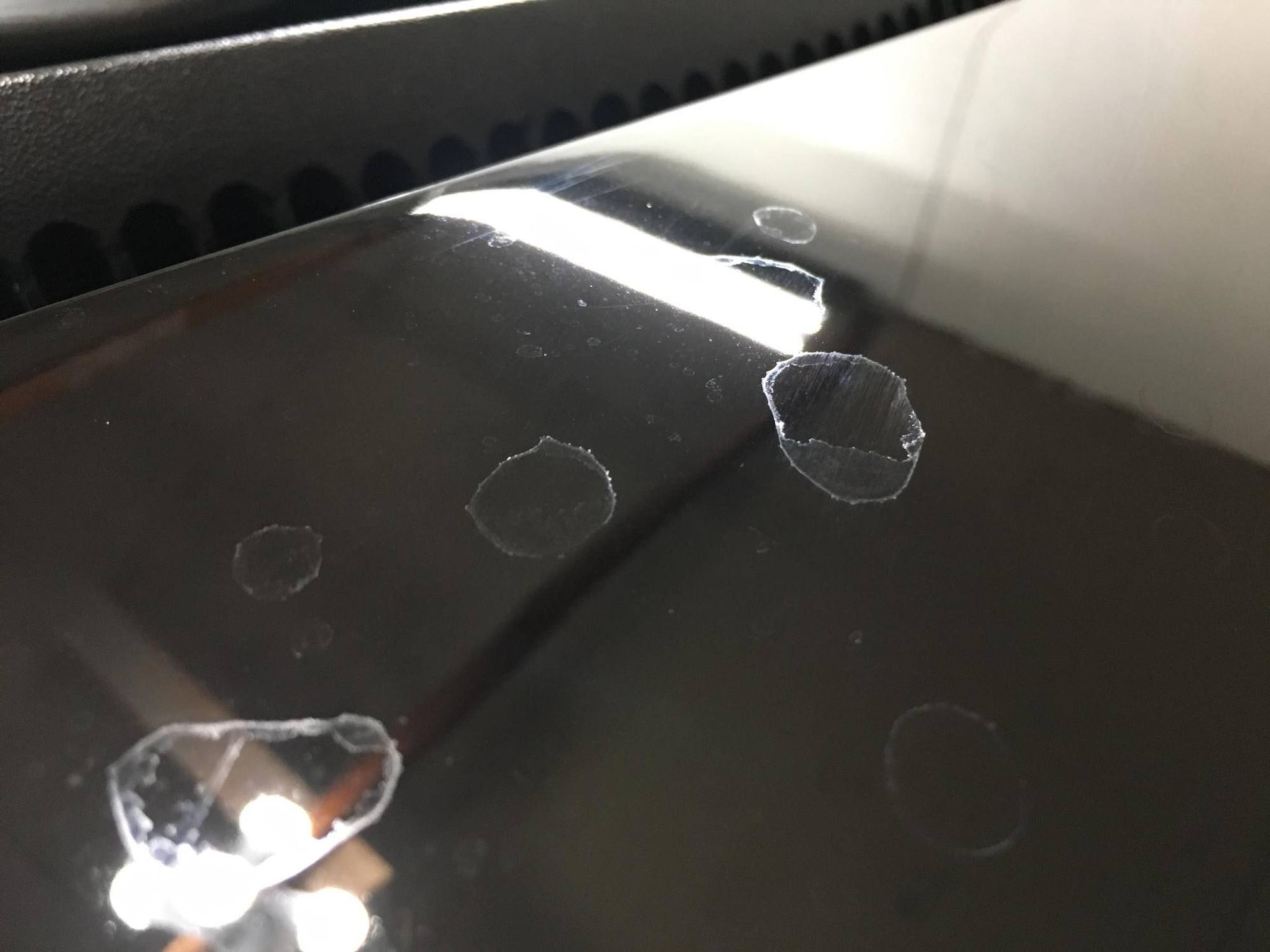 Eteched in calcium spots that can't be removed will most likely need high grit wet sanding, buffing and polish (expensive).