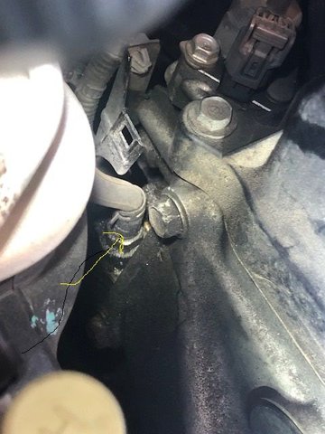 Hey guys, new to this forum but could use your help. The area on the engine has developed an oil leak. Can you tell me what part this is that's leaking? It's located near the left rear of the engine and has a vacuum line (i think that's what it is) attached.