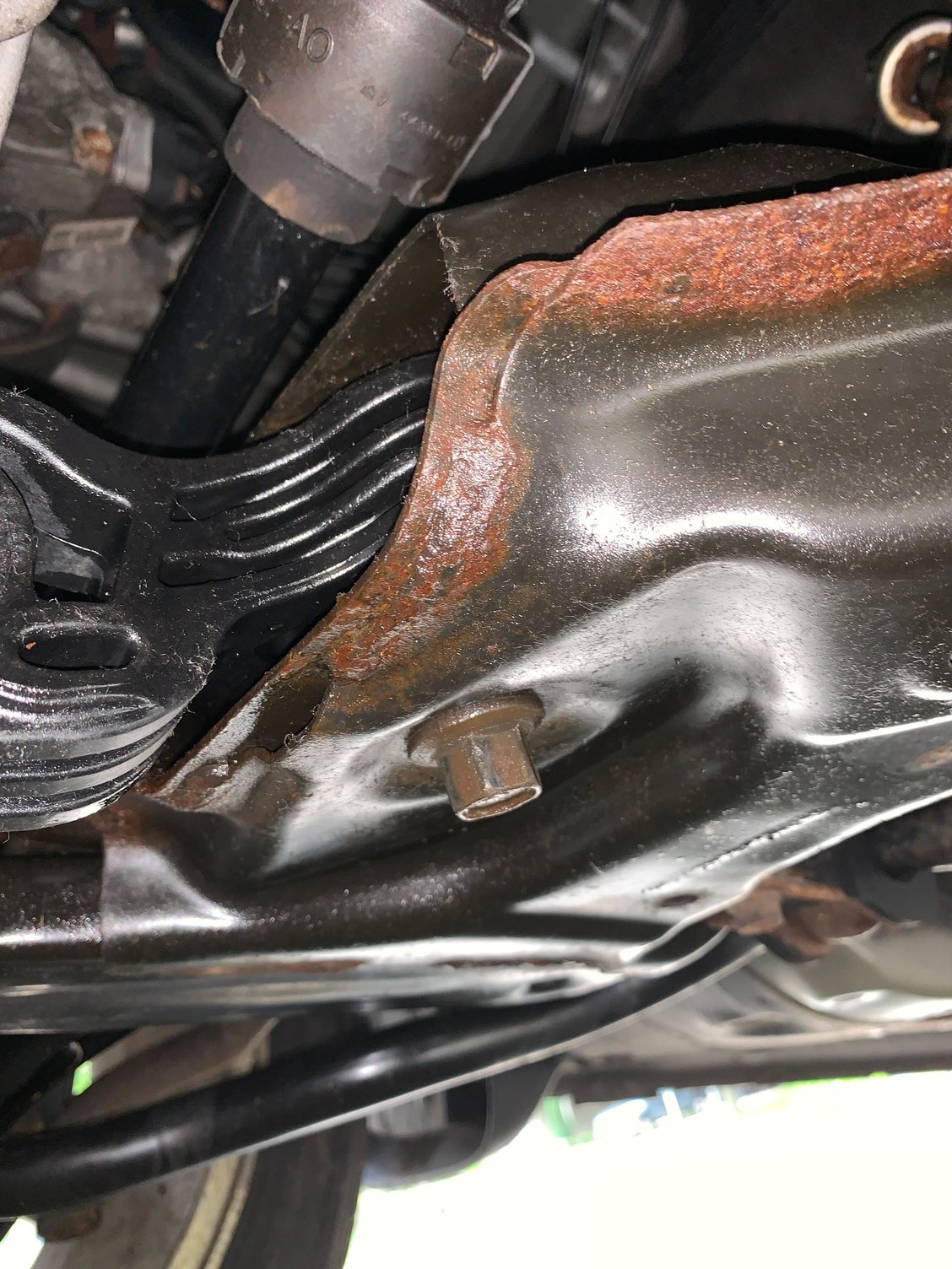 Someone please help. Same thing just happened. The nut on top broke off sub frame. The bolt spins but I think it’s rusted into the metal ring of the mount. It just spins and spins but doesn’t come out.