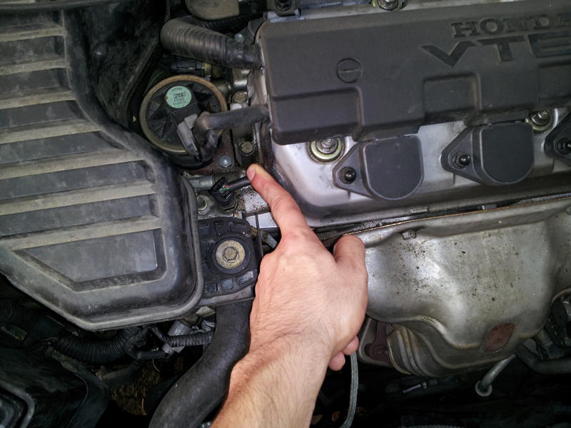 Thanks for the reply. I dug around a bit based on your response and I think I located the sensor. However, before I go ahead and replace it, I wanted to confirm if what I found is indeed the Engine Collant Temperature Sensor. I am pressing on the wiring for the temp sensor (the sensor itself is the small thing to the left of my finger)