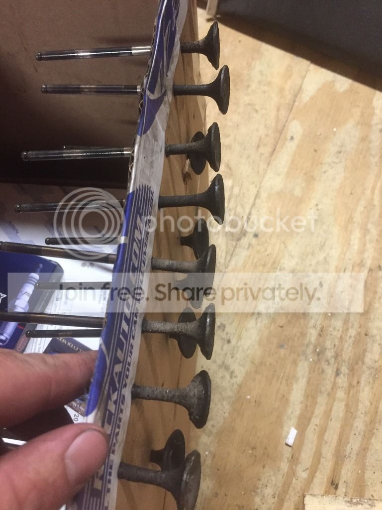 I started taking the head apart. Everything looked pretty gummed up in the chamber. Taking it to the machine shop tomorrow to get cleaned up and get the valve seats re-cut in. The exhaust valves look like mini rock candy sticks!! They are pretty terrible looking!