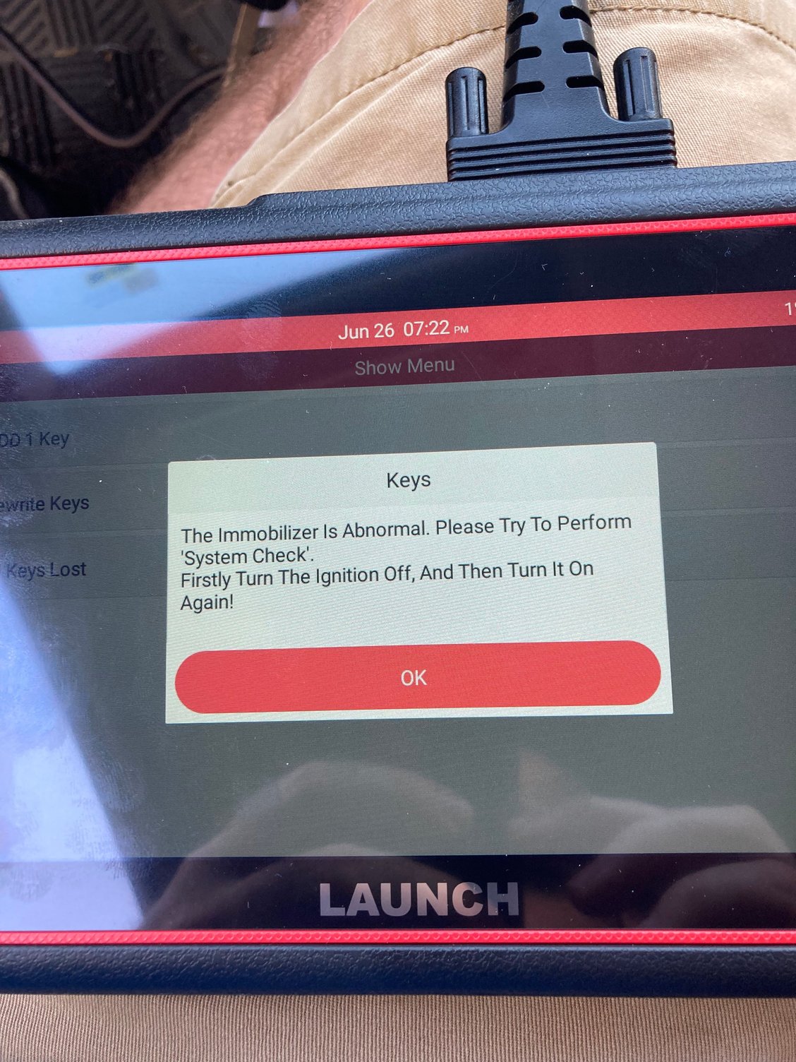 Hello I lost my only key for my 2010 Civic. I bought a new ignition cylinder with 2 standard keys (no fobs) but am using the old immobilizer. When I try to use the "All Keys Lost" function on my Launch scanner/programmer I get an error saying that I can't do it because the Immobilizer is "abnormal" but I think it is just saying that it is abnormal because the key in the ignition isn't programmed. Any tips on how to get the "All Keys Lost" function to work and I can't do a Systems check without a programmed key. I've tried with 2 different scanners.