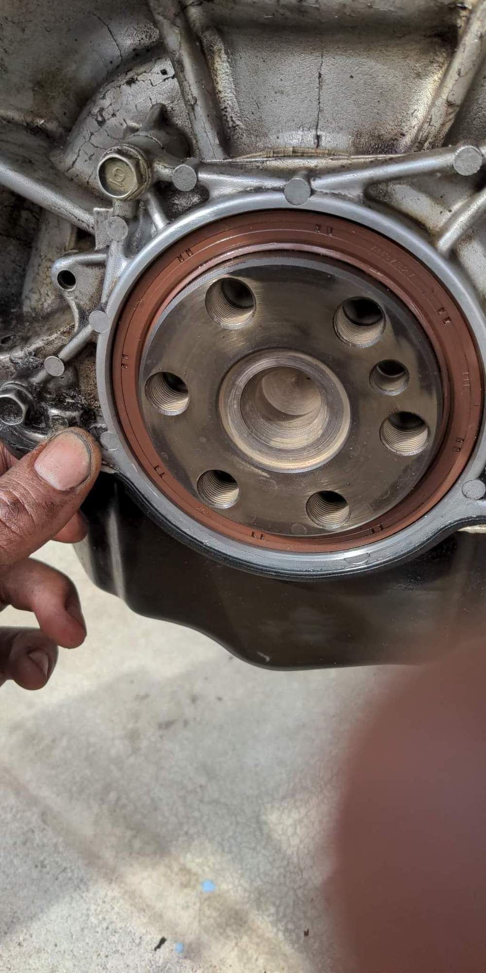 It definitely looks deeper than it should be but who's to say it won't still seal? It's a relatively cheap part that you can only get to with the engine out. Your call if you want to dig it out and replace just to be safe, or risk it and have a small oil leak sometime in the future.