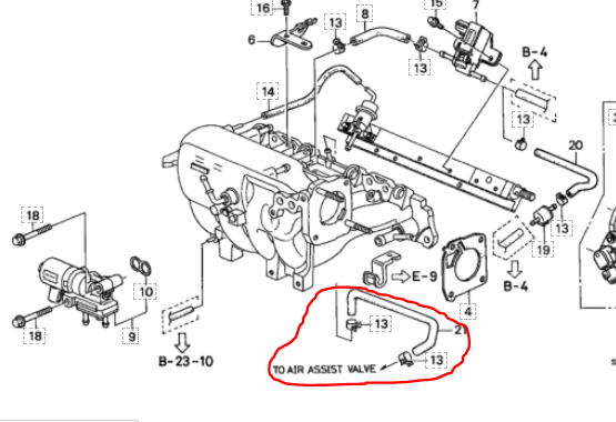 I recently purchased a 2000 Honda Civic EX, and the engine was completely taken apart. I reassemble all of it but I h make a question about a particular part. It looks like it connects to the evap surge tank line and from there to the intake duct. What does this do and is it in the correct location?