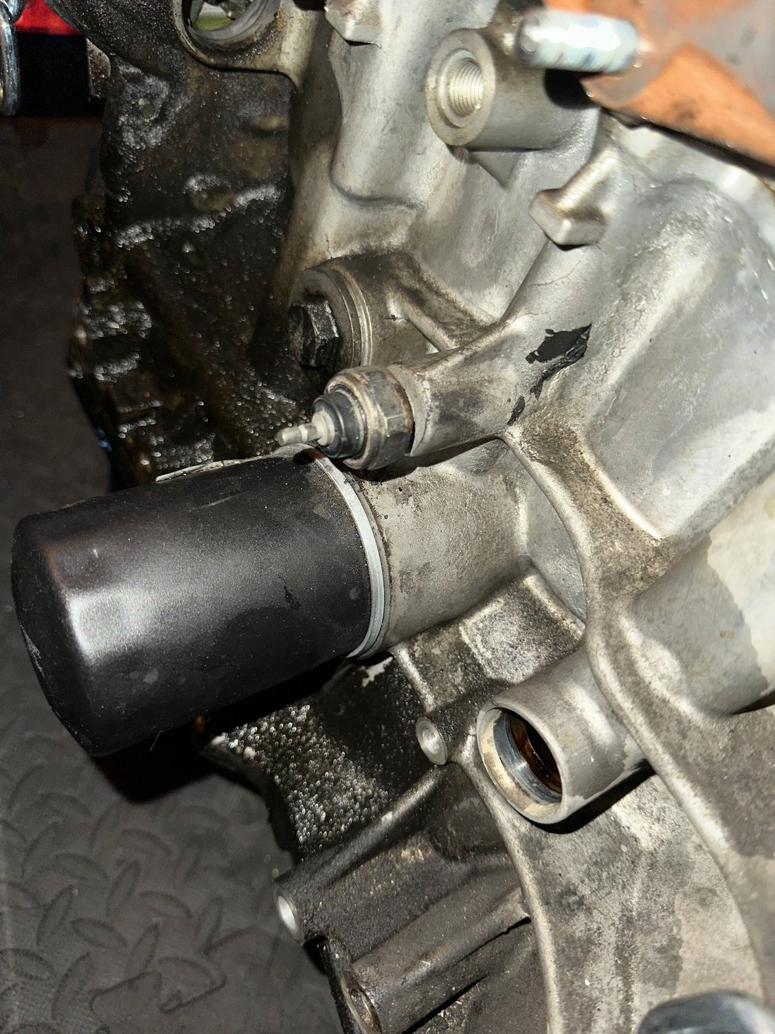 You are partly correct. That sensor above the filter is the low oil pressure switch. It controls the low oil pressure light in the cluster. You should still have a knock sensor. I think it's located on the same side, just further towards the transmission end.