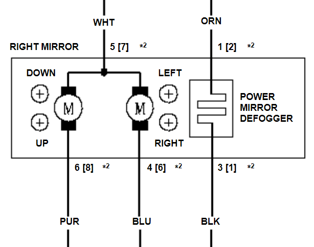 Ignore the numbers in square brackets, those are for models with turn signals in the mirror.