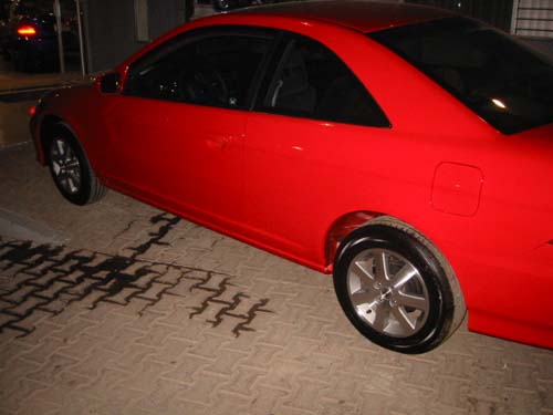those are kinda cool rims, I have the 2000 Si rims, and those are alright, but I like mine more, since I have a little lip. Yeah, I HATE those crappy firestones. My next tires are going to be the Bridgestone Potenza RE950.