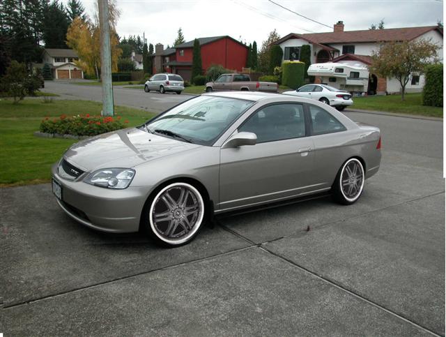 IMO, 20's and factory bumpers look odd. i would really think about it before purchasing 20s... 1) tires cost a lot, 2) cost more than 19's, 3) definately dont belong on a civic?