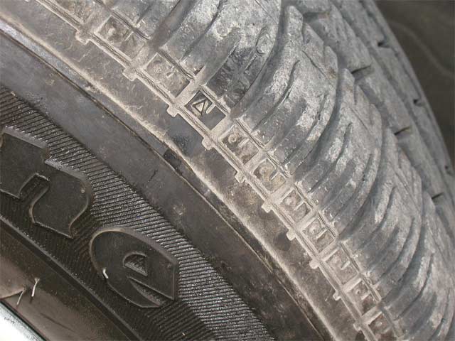 in between tread blocks on all tires are small raised areas these are tread wear indicators. The sidewall usually has an arrow pointing to were they are located.
