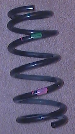 I need your help and information about these springs. How we can determine for the front and the rear spring side up or side down. For the bottom picture (front spring), there one dot and 2 dots. Which one for the top one? Is it one dot or 2 dots?