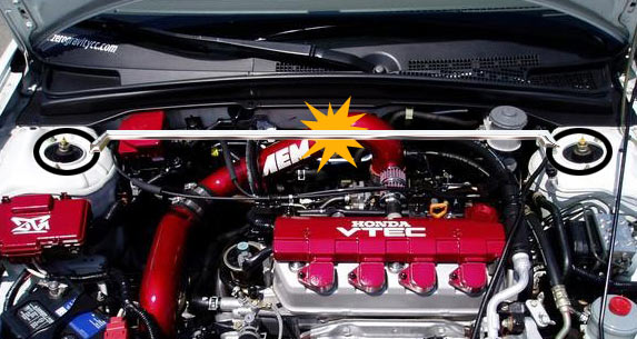 now the only strut bar that i know wont crash with the intake is the dc sport bar that is wide V shaped bar....$250.00 < thats the problem