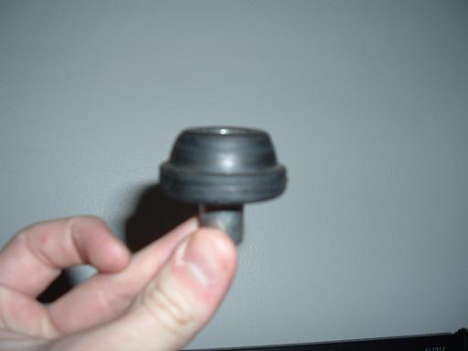Thats the top of the shock hat. That piece of rubber goes in the top of the hat, the piston goes through it, there's a large washer and a pair of nuts that hold the shock in the car. So basically right now, your suspension is free to move as it pleases and you basically have no suspension since its not bolted down