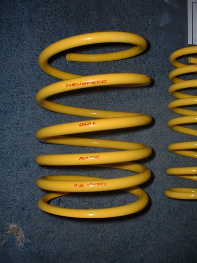 Yea this is what the neuspeed race front springs look like, the rear are yellow as well. MATTC1 you probably got the Neuspeed Sport, it does say right on the spring what they are.