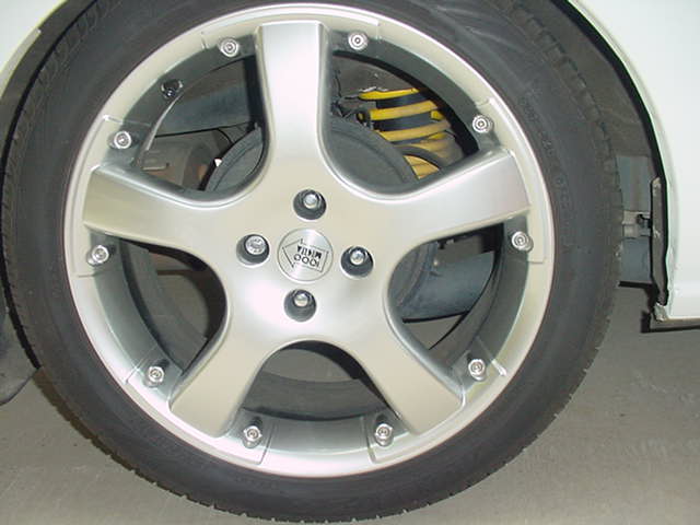 It already had 17inch Evo-5 rims and was lowered.the proublm is idont know if its coilovers or springs or what?The spring is yellow i know that but how can i find out brand?Thanks