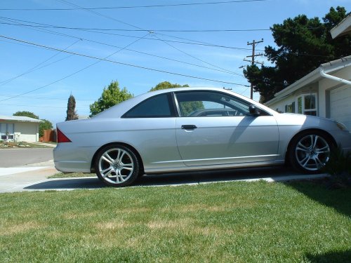 when did you get them installed? i'm pretty sure you have the old coupe springs on your car then. i had the old coupe springs as well(now they're sedan springs) and the front i had 1.5 finger gap and the rear i had like 3 finger gap with stock LX wheels. called neuspeed and they said they just released a new coupe spring(cause back then they only had one). since their headquarters is an hour away i took my car to them and they swapped it for free. they might be able to swap it for you, if not just cut a coil off one of the dead coils(the coils that touch together) in the rear and the drop should even out. dont worry there is nothing wrong with cutting a DEAD COIL.