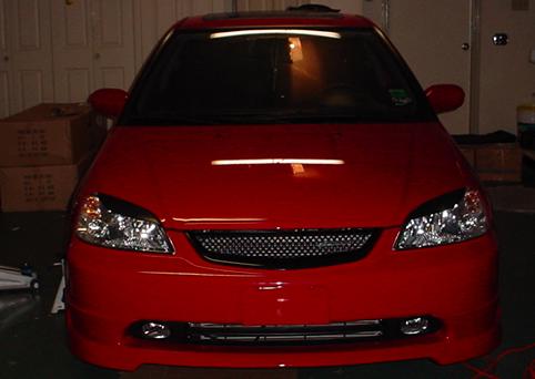 What might make it look a little better, is if you take apart your headlights, and paint the chrome surround on the lights, a black color. Just a thought.