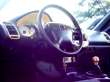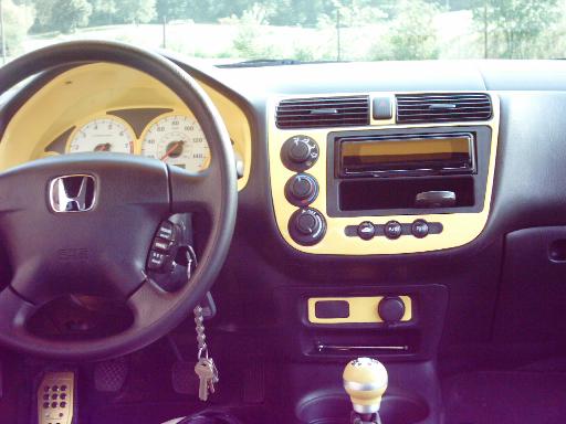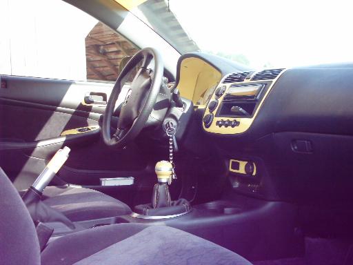 The interior doesn't bother me. It's just the yellow on the outside. Paint the car black/lose the outer yellow and you'll be lookin good. If you still want yellow on the outside, leave the H but only the H.