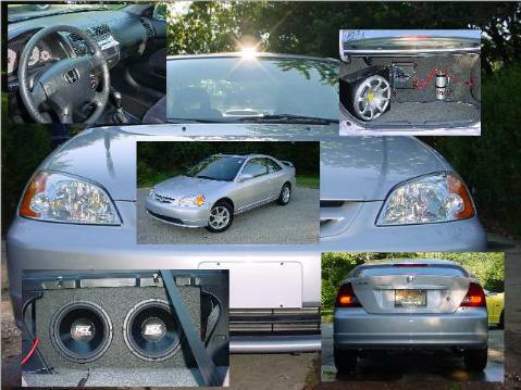 Upper left I have my interior pic, with MOMO Combat CF Shift **** ($80) and Pioneer Headunit ($550). Below it is just a pic of my ride all stock'd up... below that is my dual enclosured MTX woofers facing the back seat powered by an MTX 4250 amp... cheap but effective... Upper right pic is My one Polk/MOMO 12" woofer powered by a V12 amp in the spare tire area... Itll get better... Momo for more bass... well its pretty nice i dont mind it... Ne wayz the last pic is of my baby's phat A$$. will get about 20 x's better