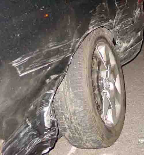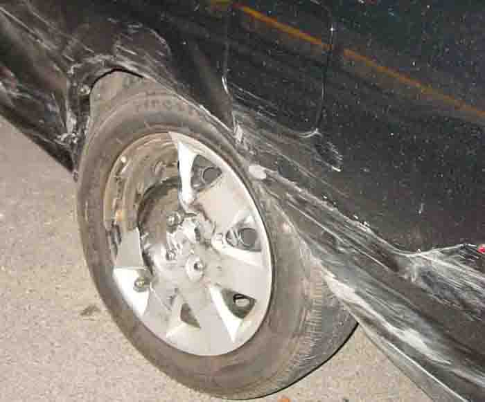 I was at my girlfriends house when we hear this screeeeeech BANG BAAANG. SO I run out to the porch and see some dude nailed her neighbors truck. My car looked fine. So I run down and wake up the neighbor. We go down to assess the damage and see wtf the deal is with the dude. Now remember I said my car "looked" fine? yeah...fat chance. The focker side swiped my car over corrected, spun out, and hit her neighbors truck. I just switched rims last week in preperation for winter (not sure if thats good or bad..I could have got a new set) The dude was hammered and tried to say his control arm broke. The cops showed up and took him away in cuffs (the only nice thing). He said he has insurance but the cops found no proof of insurance in his car. What sucks is there isn't enough damage to total the car. It'll never be the same again and my resale value just went