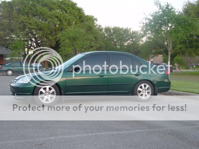That green sedan is looking good! You might want to get the color matched hood and trunk trim instead of chrome--but they would have to be painted at a shop because the 04 civics don't come in that color.