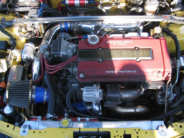 is that steering wheel srs? and the exterior DAMN. jdm front end with spoon carbon lip. the mf-10 wheels and the carbon fiber hood. tell those little girls to get off, their messin up the car. the engine is beautiful too. the mugen "socks" the strut bar and valve cover. damn. and to add the j's racing intake. dammit i love your friends car. tell him good f'n job.