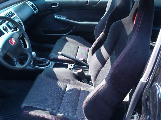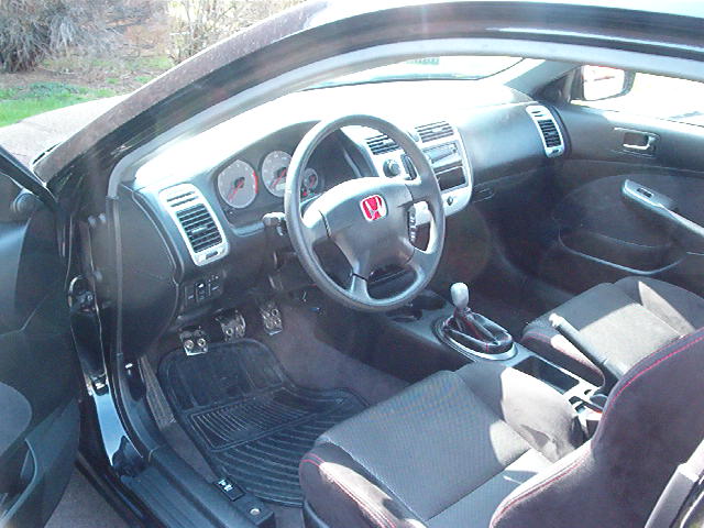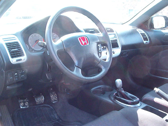 Should I paint the ring around the shifter and the window control panels to match the ones I just did? Also, Im thinking of getting a black face for the gauge panel so nothing clashes. Here are some pics of the interior, which include Ep3 front seats, JDM CTR boot and ****, and some crappy pedals and mats from the winter.