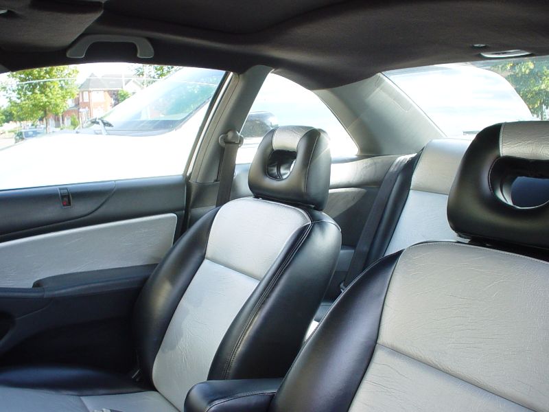 look nice. The guy that did it for me repadded everything and made it more bucket. They are soo much more comfortable. I took the idea of the head rest from another member. I dont remeber who but he did a black and white carbon fiber seat interior..Ill get more pictures of the head liner, and yes I do have a sunroof, let me say it took me 2 hours just to get that part off so he could redo it. Tip for you if you want to take that part off... take off the whole sunroof.. dont try to just remove 4-6 screws and hope you can slip it out... because thats what I did.. it worked but it was a pain in the *** putting it back in.