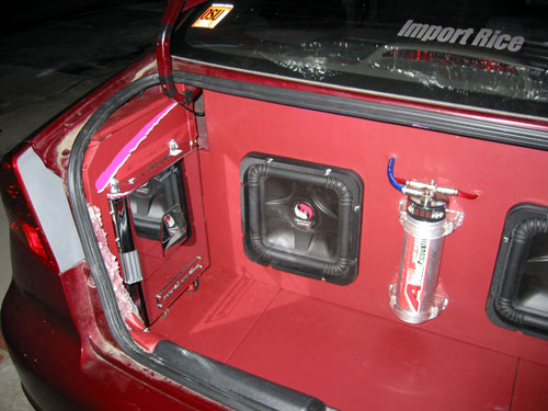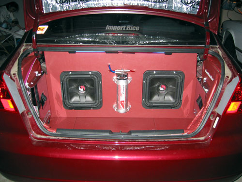 or the glowing neon wire and run it all around the border of the speakers, cap, etc.. brighten things up a bit since ur setup is for show, i'd add neons/leds, or neon rope/wire.. LOOKS GOOD! Thread