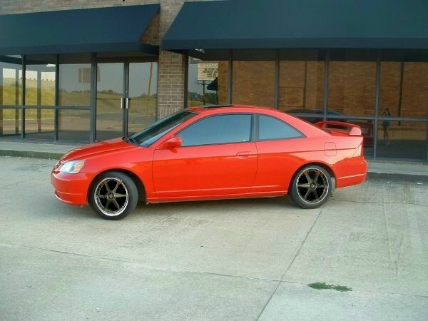 Today at college I saw one of the nicest and cleanest car I have ever saw. It was a 2k1 ex coupe and it was ralleye red. It had 18" rims like these..