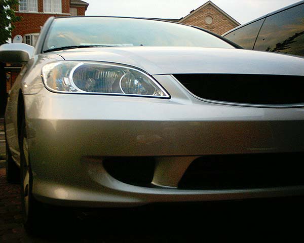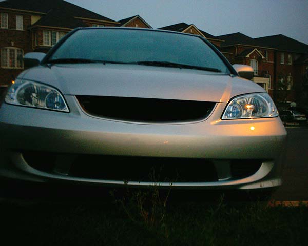it was a bitch to take off the front bumber and to put it back on, but i did it hehe.. and here's the result.. it has not top grill.. for now untill i get a black one, oh and sorry for the bad quality blury pics, i used my friends digital camera.. sooo yehhh all comments,suggestions are welcome!