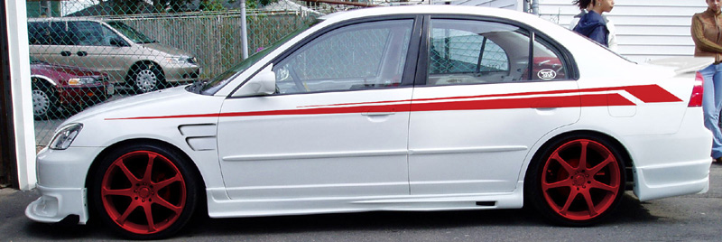 yo pitchy i think yer right...you need the red outside to go with teh red inside...as for the rims....go to www.axiswheels.com and chek out the TC Evo's they come with different color lips and they are interchangeable. love the fenders...about to buy those...and i think i just found the wing i been searching for. in my opinion tho....i would get a new kit maybe full bumpers? i mean yers looks good but u been rockin that for a year and a half and from when i saw you at import expressions in boston hahaha crazy show... get full bumpers or if you like lips just get the kaminari front and rear i like yer sides since i got them for my coupe. but keep doin it like u been looks legit