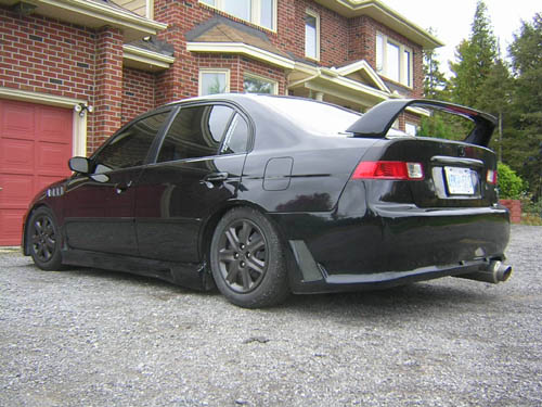 it looks nice to me, but the spoiler is a little rice since that size isnt stock on sedans, and the stock painted hubs dont look bad from a distance but if u buy some nice looking gunmetal / black rims, it would like a ton better.. overall it looks really nice, good work.