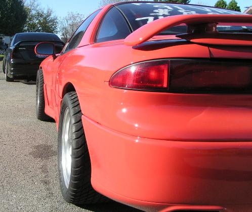 the guy gave me new rims for it black rims chrome lip and hes redoing the tint right now also on the back glass where its black i am having him put a solid black piece of vinyl to cover up the twin turbo logo he is also giving me 2 new and bigger turbos for it and a few other aftermarket parts