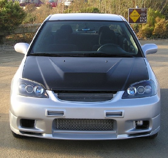 I'm thinking about getting that exact same front since I banged my car up a couple of weeks ago. The only thing that I'm going to different to it is to shave the two vents in the middle of the bumper, so that way it's flat all the way across. I really don't like that look. Other than that, it's clean.