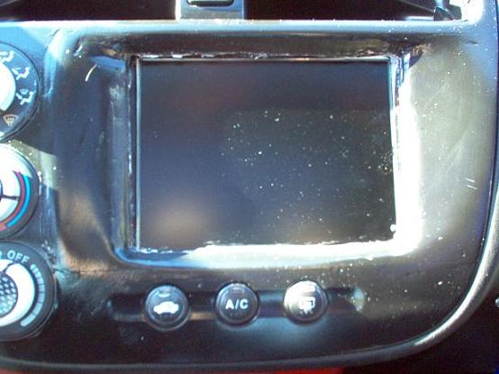 -experemtation with bondo (i never used bondo before, but ive started molding my in-dash moniter in, i got the first step complete so now i have to go back and work all the fine details out. it should end up looking real nice.