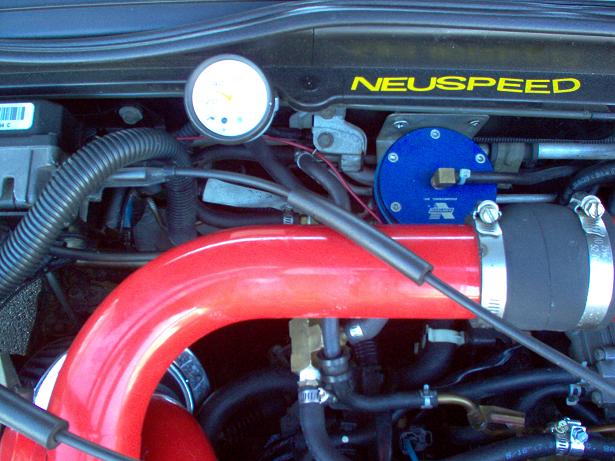i also just got done installing a fuel pressure guage that im going to eventually mount on the hood in a carbon fiber pod, now its just kinda chillin in the engine bay