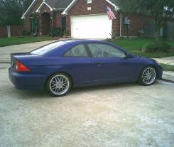 2004 CiViC DX...so far ive gotten 17" BSA rims, 2 inch drop, a EX cluster swap, full exhaust, and a full sound system...the integra you see there is up for parts