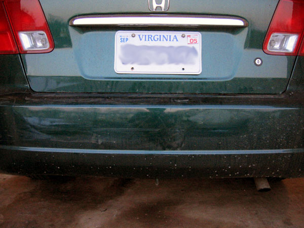 my older sister's boyfriend's mom backs into the rear bumper (In the same spot as my friend's mom did, mind you)