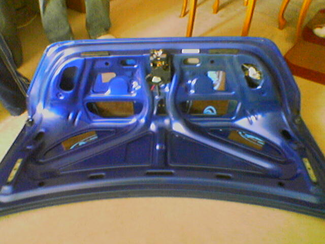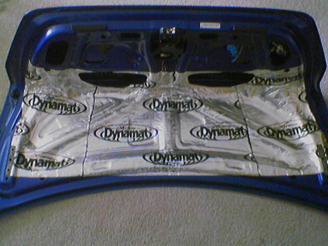 i just got my bulk pack of dynamat extreme off ebay so i took of my trunk. wasnt hard at all taking off the trunk. hardest part was moving the trunk into my house, i scratched the corner on a wall. hopefully i could buff it out but its all good. sounds so much better. the rattle was definately reduced.