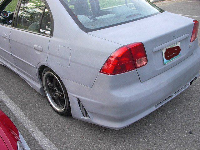thanks to sandy for taking and loading up the pics, and you can't tell but 2 nights ago i basically ripped my rear bumper in half and it ripped off the car cause i got it caught on something. so i had to complety cut out the passenger side back and remold it. but i'd say about 8 more hours of body work and i can paint. man fiber glass is a pain in the A$$. btw its all DIY besides paint my buddy is spraying it.