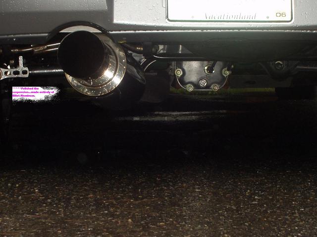 OK here are some more. The little caption is small but reads......Polished suspension, made entirely of Billet Aluminum. They cover it with rubber coating for the ship from Japan but I took it off and polished it up to make myself feel special...hehe.