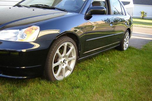 I have the exact same set up as you,the ride feels better than stock to me as well. I'm also on 215/45/17 tires which helps the ride a little bit in the comfort area lol. Here are some pics of how low it is, might give you an idea how it may look like, soonercivic.