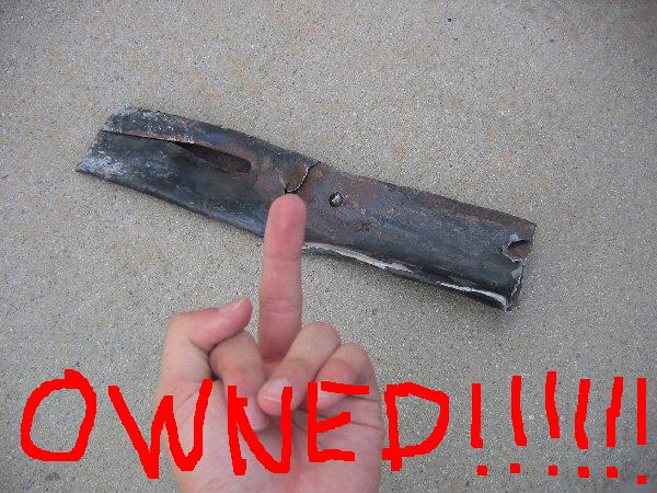 Dam that piece looks like a lawn mower blade. LOL. sorry to laugh but i cant believe that **** did that. NUTS!