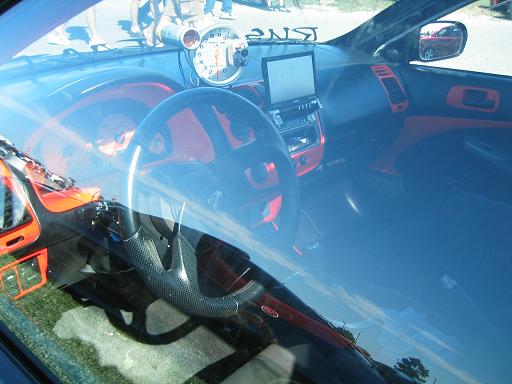 The blue one has all the interior fiberglassed, then the dash with the head unit is stock black, just surprised me he didn't have it all fiberglassed too. The two tone red and black i like but not with those wheels or body. Just to ricey for me.