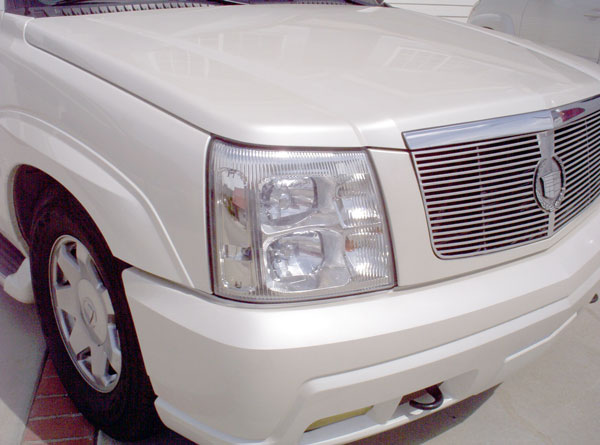 Cleared my girls 03 civic headlights... tried it on my buddies escalade... came out really nice. Also did part of his system... Looks good I think... what do you guys think. This is the cleared headlights and a pic of a stock headlight